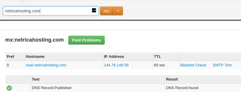 Tras realizar la acción anterior verás en tu pantalla los datos relacionados con los registros MX que tiene tu dominio.