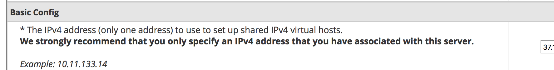Una vez que has cambiado la dirección IP en el archivo de configuración del sistema, accede al WHM y en Basic WebHost Manager® Setup, busca la opción que te mostramos a continuación.