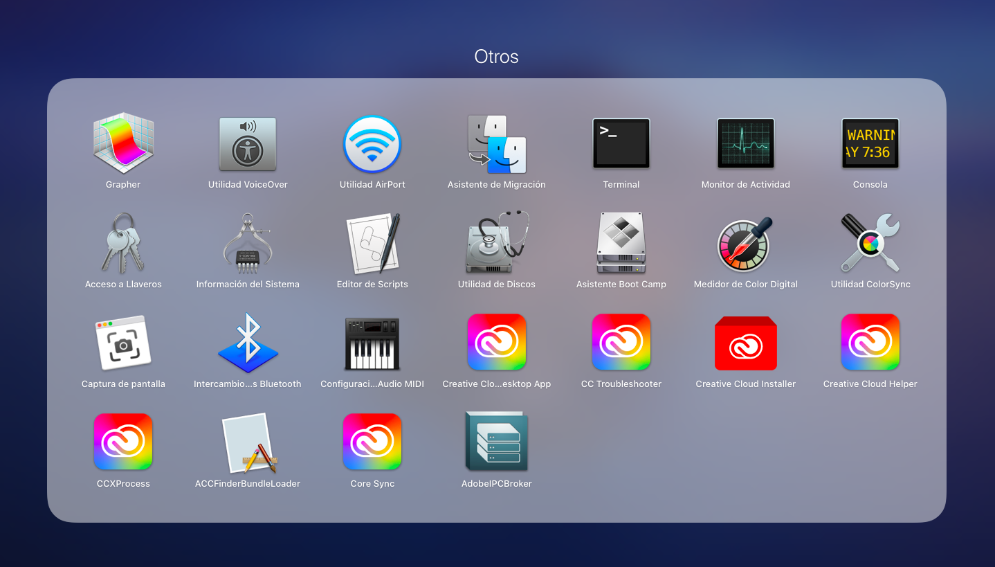 Cuando abras el Launchpad te encontrarás con un cajón de aplicaciones, una lista gráfica de todas las aplicaciones instaladas en el sistema, lo que ahora debes hacer es fijarte en la carpeta Otros: