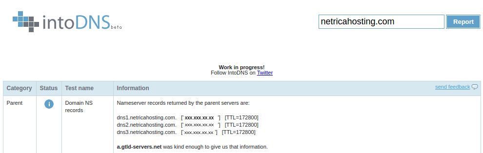 En el apartado «Information» verás las DNS que está utilizando tu dominio en el momento que has abierto la página.