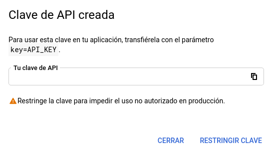 6.- Tras realizar los pasos anteriores, te aparecerá en pantalla tu calve de API. Deberás copiarla para poder insertarla en tu magento en los siguientes pasos.