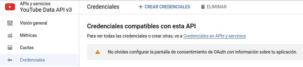 4.- Sitúate en el menú lateral de la siguiente sección y adéntrate en la opción «Credenciales«.
