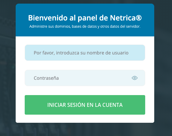 El primer paso es iniciar sesión en nuestro panel de control Directadmin, la ruta de acceso normalmente es https://nombre-del-servidor:2222 donde nombre-del-servidor es un nombre que te indicamos en el momento del alta