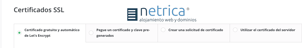 En las opciones de Certificados SSL selecciona CERTIFICADO GRATUITO Y AUTOMÁTICO DE LETS ENCRYPT: