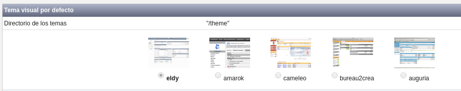 2) Dentro de la sección entorno deberás localizar el Directorio de los temas que tengas dentro del Dolibarr. Para cambiar la interfaz pulsa sobre el botón «Modificar» localizado en la parte inferior de tu pantalla y acto seguido vuelve al apartado de temas y selecciona la plantilla deseada. Para finalizar pulsa sobre el botón «Grabar» localizado en la parte inferior de la pantalla.