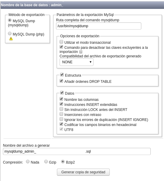 Para ello, desde el asistente selecciona las opciones que quieras modificar o déjalo como viene por defecto y pulsa sobre el botón «Generar copia de seguridad».