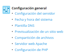 2) Localiza la sección «Configuración general» y pulsa sobre la opción «Servidor web Apache».