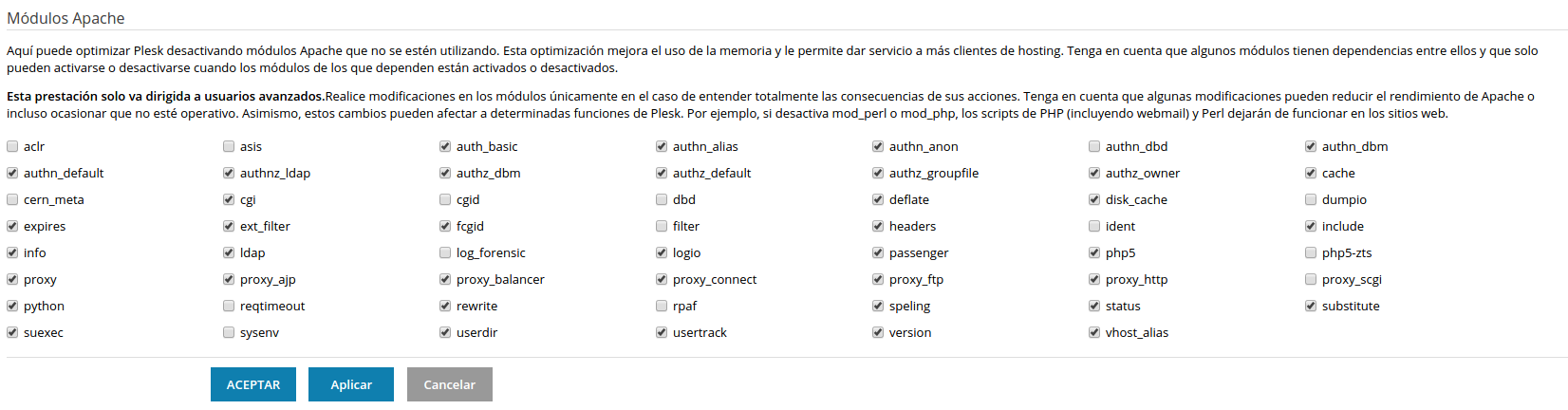 Guías Plesk: módulos Apache en Plesk