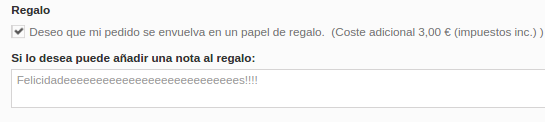 El precio del envoltorio se añadirá automáticamente una vez se marque la casilla «Regalo».