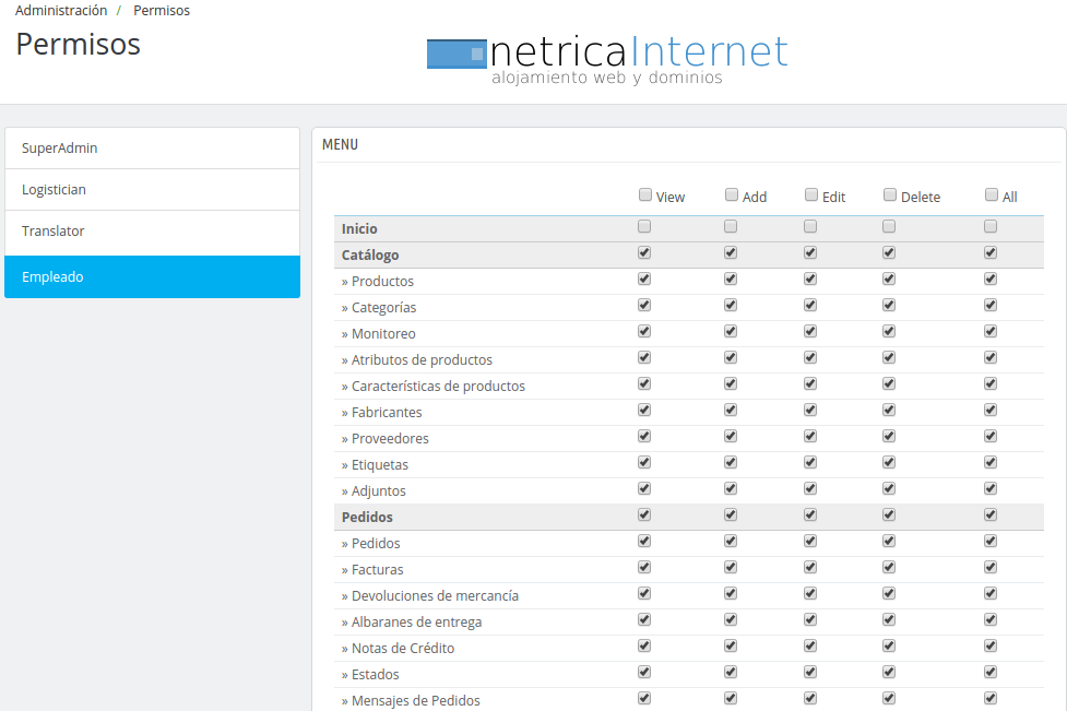 Guias PrestaShop: cómo seleccionar permisos para un determinado perfil en PrestaShop - SYSPROVIDER®