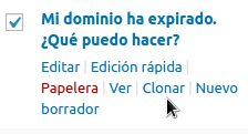 Pasa tu cursor sobre la entrada que quieras clonar y verás como aparecen una serie de opciones entre las cuales existirá una llamada  «Clonar». Pulsa sobre ella.