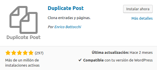 Desde el buscador escribe el siguiente nombre: “Duplicate Post”. Una vez localizado, pulsa sobre “Instalar Ahora” y por último, actívalo.