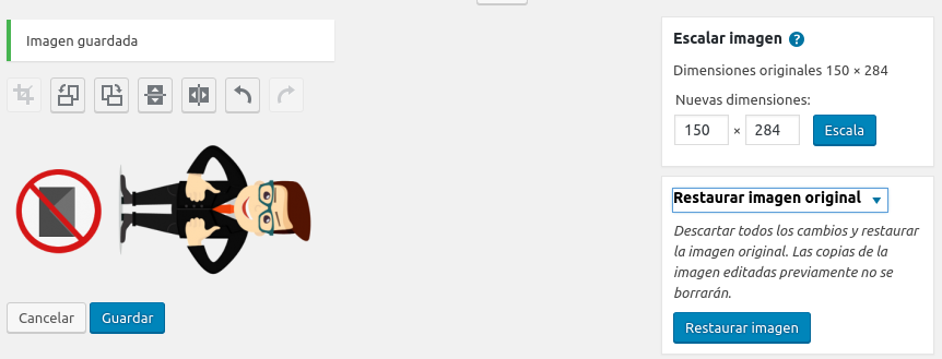 Ejemplo: antes de pulsar sobre el botón «Restaurar imagen», la imagen tenía otras dimensiones y estaba con otra orientación diferente a la foto original subida al wp-admin.