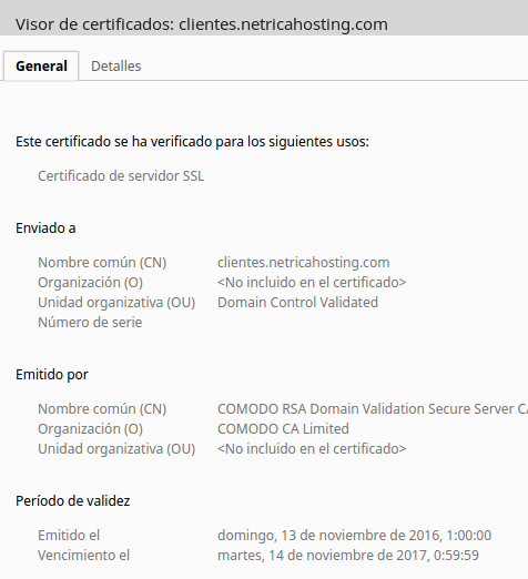 En la sección «Periodo de validez» podrás ver la fecha el la que el certificado fue emitido y su fecha de vencimiento.