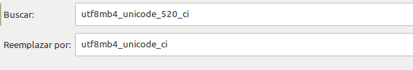Deberás reemplazar todas las coincidencias encontradas por el parámetro utf8mb4_unicode_ci